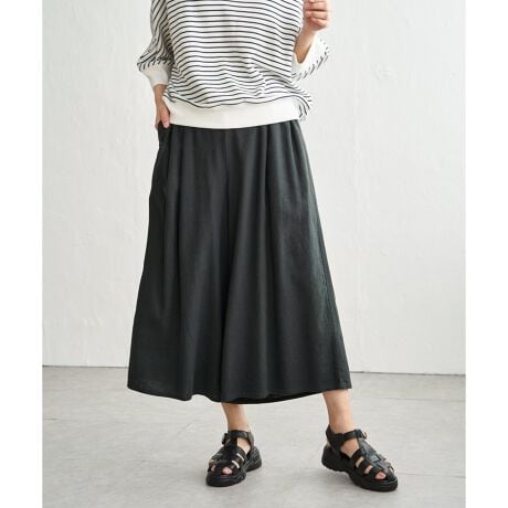 麻混素材と、綿100%デニム素材から選べるアソート展開のガウチョ。