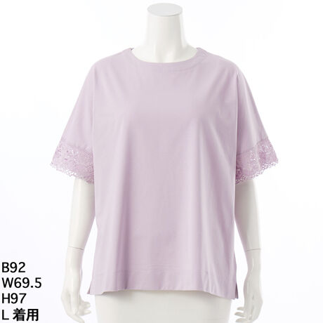 接触冷感 袖レースカットソー 【グリーンノート】【大きいサイズ】【レディース】【L・LL号】