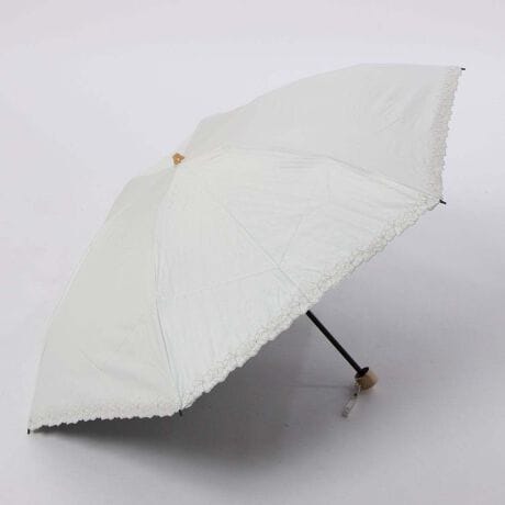 同色の刺繍フラワーがフェミニンな雰囲気の折り畳み傘です。