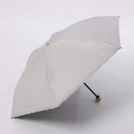 同色の刺繍フラワーがフェミニンな雰囲気の折り畳み傘です。
