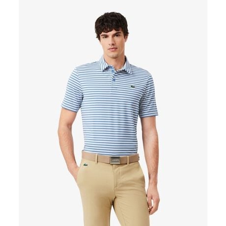 [型番:DH3187-10]クリーンな出で立ちに現代機能を備えるボーダーゴルフポロシャツ・環境保全に配慮したリサイクルポリエステル仕立てのストレッチジャージ素材・汗をかいても快適さを保つウルトラドライ機能・動きやすさと上品さを両立するレギュラーカット・クリーンなスタイルを演出する細ピッチのボーダー柄・左胸にシリコン製のワニロゴパッチ・Regular Fit