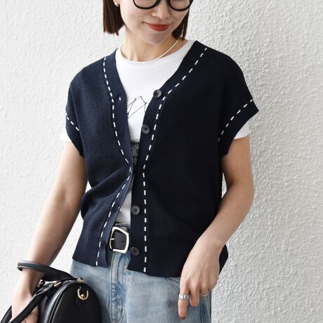 配色ステッチがアクセントになったサマーニットベスト。