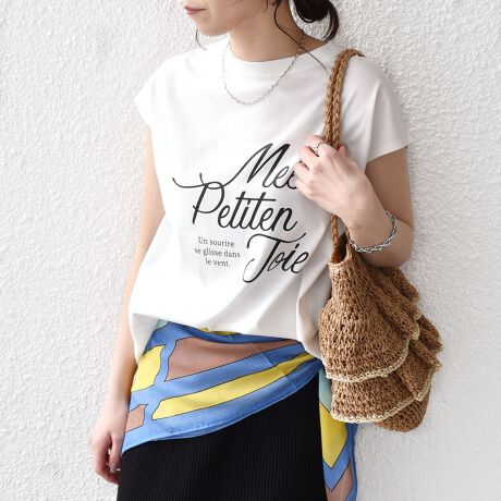 程よくゆとりのあるシルエットとフレンチスリーブが、カジュアルながらも女性らしい雰囲気で着用いただけます。