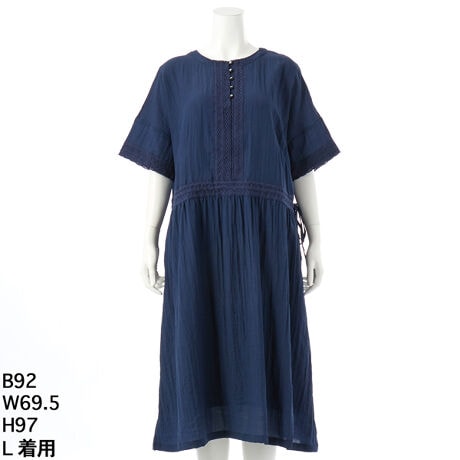 グリーンノート 大きいサイズ レディース ゆったり ワンピース 半袖 涼しい レース シボ感
