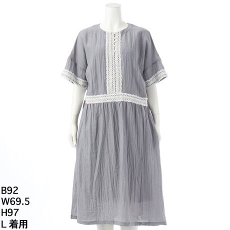 グリーンノート 大きいサイズ レディース ゆったり ワンピース 半袖 涼しい レース シボ感