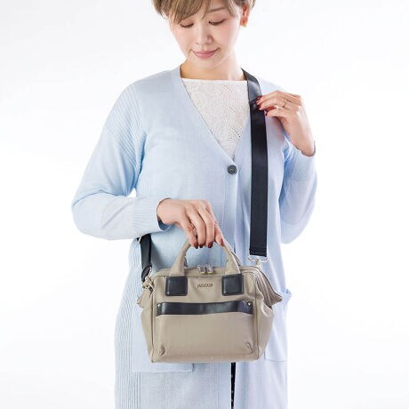 ショルダーベルト付きで持ち方を変えられる2way仕様は、機能的でありながらもシルエットが上品。