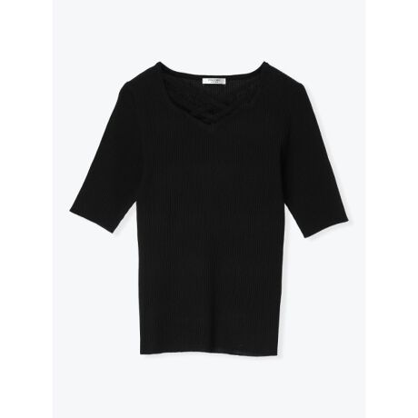 クロスデザイン半袖ニットプルオーバー