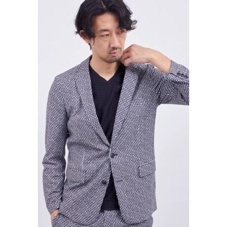 サマーツイード柄をプリントで表現した別注トリコットメッシュ素材を使用したジャケット。袖裏なしの背抜き仕様で通気性を高め、細身のシルエットながら360°全方向ストレッチにより快適な着用感を実現し、サラリとした肌離れの良いタッチも魅力です。単品でのカジュアルアップはもちろん、同素材パンツとのセットアップスタイルなら都会的でエレガントな装いを完成させる一着です。