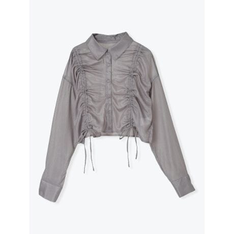 [型番:26560783804]軽やかなシアー素材を使用した、抜け感のあるショート丈ブラウス。フロントに施したドローストリングデザインが立体感を生み、シルエットの変化も楽しめます。コンパクトな丈感で、ハイウエストのボトムやスカートともバランスよく合わせられる一枚です。