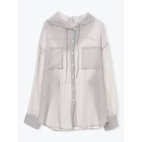 [型番:26550735368]軽やかなシアー素材が涼しげな印象を与えるフード付きシャツ。ゆったりとしたビッグシルエットと大きめのポケットが、抜け感のあるカジュアルな雰囲気を演出します。タンクトップやキャミソールにさらりと羽織るだけで、季節感のあるレイヤードスタイルが楽しめる一枚です。モデル(青/白着用)身長:165cmMサイズ着用