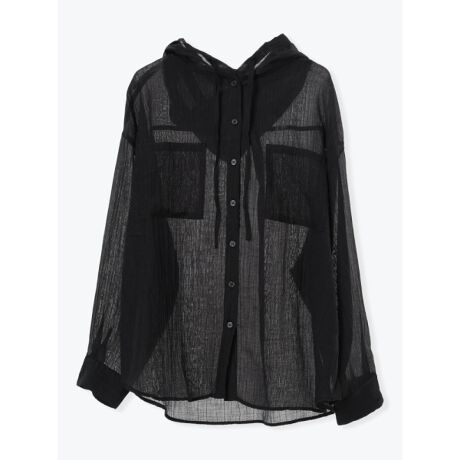 [型番:26550735368]軽やかなシアー素材が涼しげな印象を与えるフード付きシャツ。ゆったりとしたビッグシルエットと大きめのポケットが、抜け感のあるカジュアルな雰囲気を演出します。タンクトップやキャミソールにさらりと羽織るだけで、季節感のあるレイヤードスタイルが楽しめる一枚です。モデル(青/白着用)身長:165cmMサイズ着用