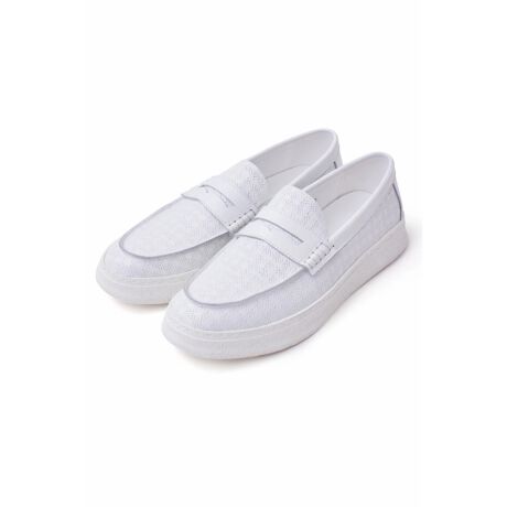 [型番:1700543][DESIGN] 革靴の品とスニーカーの楽チンさを掛け合わせ、上品さと歩きやすさを両立させたローファー。 クラシックな千鳥柄の型押しが表情を生み、シンプルな装いでも足元に自然な奥行きを与える。 厚みのあるソールでほどよいボリュームを出しつつ、ローファーらしい端正さはしっかりキープ。 スラックスやセットアップはもちろん、細身デニムにも相性がよく、きれいめにまとめたい日の“外しすぎない1足”として活躍する。