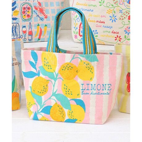 南欧各地のモチーフをあしらった柄が華やかなミニトートバッグ。