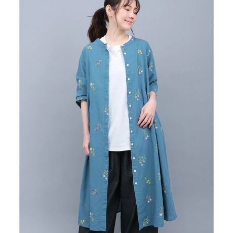 カラフルな草花の刺繍を麻混の生地にのせて、爽やかに仕上げました。