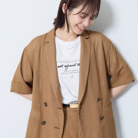 同素材のパンツと合わせたセットアップスタイルなら、洗練されたオフィスカジュアルやオケージョンシーンにも対応します。