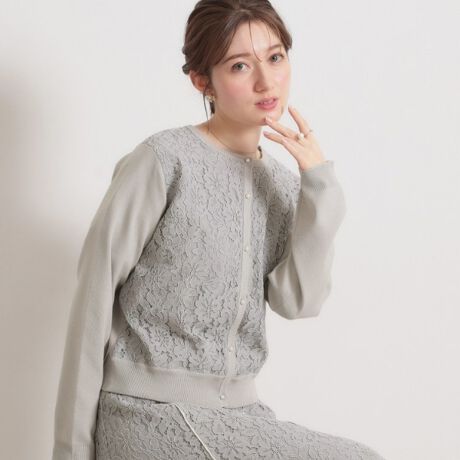 前身頃がレース、袖と後身頃がニットのカーディガンです。