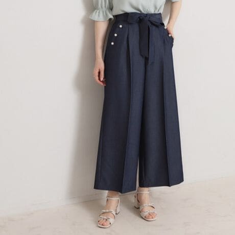 マリン風アソート釦シャンブレーワイドパンツ