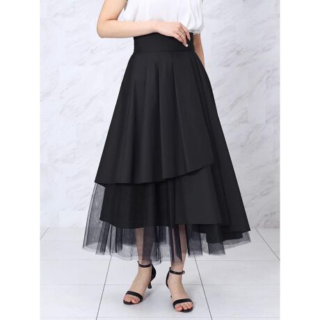 内側にチュールを重ねた、ふんわりとした立体感が魅力の大人フェミニンなフレアスカート。