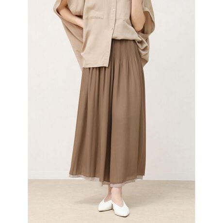 素材 | ポリエステル:100% 透け感 | 若干あり ※インナーのカラー等をお気をつけ下さい 伸縮性 | なし 原産国 | 中国 家庭洗濯 | 手洗い可 ポケット | なし 裏地 | なし ウエスト | 総ゴム仕様