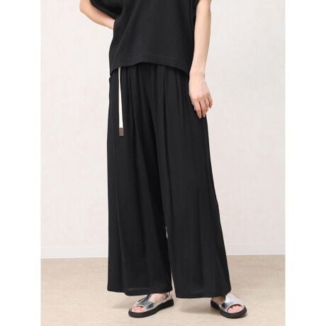 ・しなやかなレーヨンとシワになりにくいポリエステルをブレンドした混紡素材を使用し、ゆるりとした着心地でデイリーに扱いやすいのが魅力。