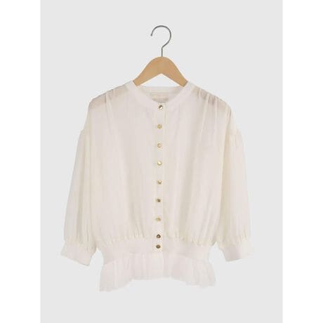 前身頃と袖には透け感のあるシアー素材を使用し、軽やかで女性らしい印象に。