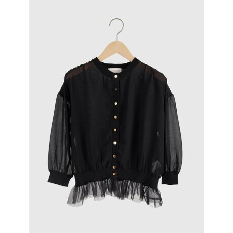 前身頃と袖には透け感のあるシアー素材を使用し、軽やかで女性らしい印象に。