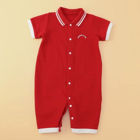 ロゴ入りのおしりパッチが可愛らしいデザインで、配色使いのスナップ釦やプリント、