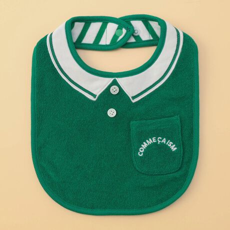 表面は柔らかなパイル素材で鹿の子ポロシャツをイメージしたアップリケ側と、