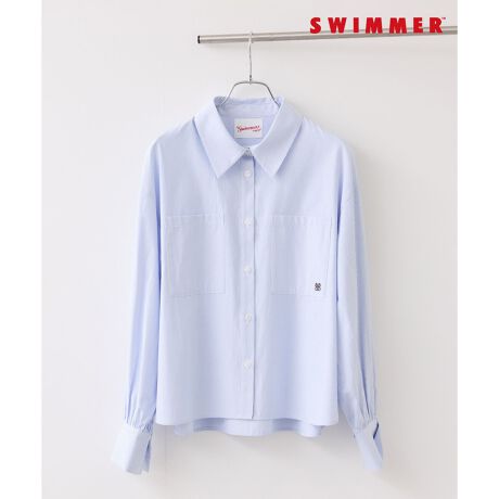 羽織にぴったりなワイドシャツ。オーバーすぎず着回ししやすいシルエットです。さらっとした肌触りで肌に触れてもストレスなく通年でご着用いただけるアイテムです!背面側の襟にはSWIMMERのリボン風ロゴを、胸元ポケットにはVISのエンブレムを配色刺しゅうで施したコラボレーションデザインです!ふとした時に目に入る刺しゅうのポイントにキュン!さりげなさが大人かわいいストライプシャツです。