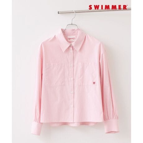 羽織にぴったりなワイドシャツ。オーバーすぎず着回ししやすいシルエットです。さらっとした肌触りで肌に触れてもストレスなく通年でご着用いただけるアイテムです!背面側の襟にはSWIMMERのリボン風ロゴを、胸元ポケットにはVISのエンブレムを配色刺しゅうで施したコラボレーションデザインです!ふとした時に目に入る刺しゅうのポイントにキュン!さりげなさが大人かわいいストライプシャツです。