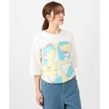 [型番:OZ3ED05049]サテン調生地の上品なツヤ感が魅力的なスクエアスカーフ。大人っぽさを引き立てるチェーン柄と、春夏の装いをパッと明るく彩る爽やかなカラーリングがこれからの季節にぴったりな一枚です。首元に巻いてお顔周りを華やかに演出するのはもちろん、シンプルなバッグの持ち手に結んでコーディネートのアクセントにするのもおすすめ。カジュアルからきれいめスタイルまで決まるマストハブアイテムです。