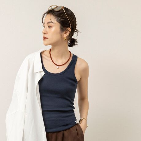 ・コットンリブのシンプルなタンクトップ
