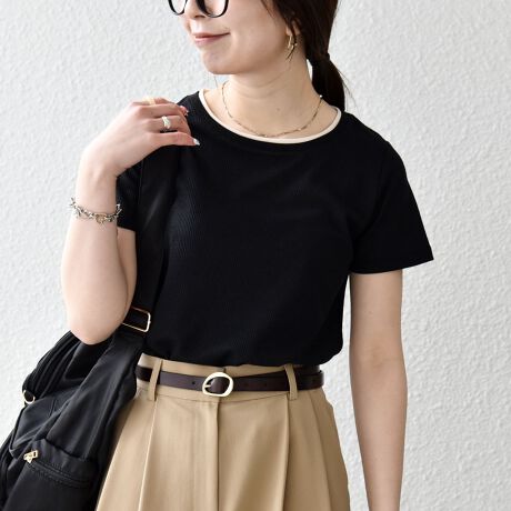 シアー感のあるワッフル素材を活かした、軽やかな印象のバイカラーTシャツ。