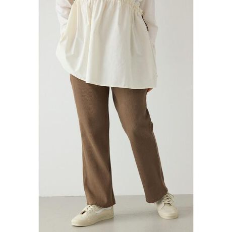 ■ポイントリブ編みのカットソー素材を使用し、縦ラインを強調することで脚をすっきりと見せてくれるパンツ。ラクな穿き心地ながら、きれい見えが叶う優秀なアイテムです。■ディテールウエストはゴム仕様で、締め付け感がなくリラックスした穿き心地です。■スタイリングオーバーサイズシャツを合わせた、リラックス感のある今っぽいスタイリングもおすすめ。コンパクトなトップスからゆったりシルエットのトップスまで、幅広くバランスが取りやすい1本です。■生地ポリウレタン混のリブ素材を使用しており、ストレッチ性に優れています。■透け感:なし■裏 地:なし■伸縮性:あり■光沢感:なし※お取り扱い上のご注意BLK・REDは、洗濯・クリーニング・着用(使用)時に、他の衣類や雑貨、家具類へ色移りする場合がございます。特に汗や雨などで湿った状態では色落ちしやすくなりますので、白・淡色との組み合わせはお避けください。[注意事項]※画像の商品はサンプルです。実際の商品と仕様、加工が若干異なる場合があります。※画像の商品は光の照射や角度、お使いのモニター環境により、実物と色味が異なる場合がございます。※着用、お取り扱いの際は、アテンションタグをご確認ください。