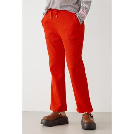 ■ポイントリブ編みのカットソー素材を使用し、縦ラインを強調することで脚をすっきりと見せてくれるパンツ。ラクな穿き心地ながら、きれい見えが叶う優秀なアイテムです。■ディテールウエストはゴム仕様で、締め付け感がなくリラックスした穿き心地です。■スタイリングオーバーサイズシャツを合わせた、リラックス感のある今っぽいスタイリングもおすすめ。コンパクトなトップスからゆったりシルエットのトップスまで、幅広くバランスが取りやすい1本です。■生地ポリウレタン混のリブ素材を使用しており、ストレッチ性に優れています。■透け感:なし■裏 地:なし■伸縮性:あり■光沢感:なし※お取り扱い上のご注意BLK・REDは、洗濯・クリーニング・着用(使用)時に、他の衣類や雑貨、家具類へ色移りする場合がございます。特に汗や雨などで湿った状態では色落ちしやすくなりますので、白・淡色との組み合わせはお避けください。[注意事項]※画像の商品はサンプルです。実際の商品と仕様、加工が若干異なる場合があります。※画像の商品は光の照射や角度、お使いのモニター環境により、実物と色味が異なる場合がございます。※着用、お取り扱いの際は、アテンションタグをご確認ください。