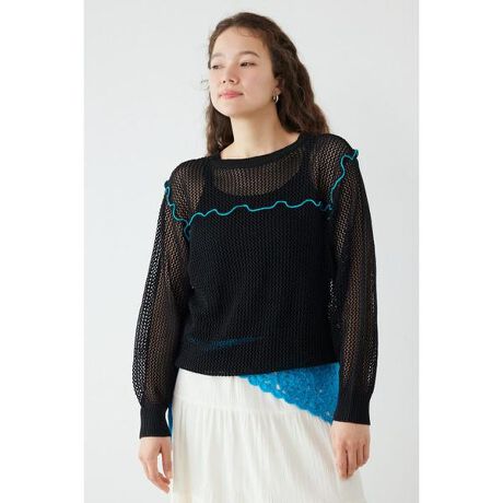■ポイント前後2WAYで着用いただけるニットトップスです。ざっくりしたサイズ感でノンストレスで着用いただけます。■ディテール透かし編みで、配色メローがシンプルながらにコーディネートのポイントになります。■スタイリングシンプルにデニムで合わせるだけで、大人カジュアルスタイルの完成です。ロンTや半袖、キャミソールなど気温感に合わせてインナーを変えるとロングシーズンご利用いただけます。[注意事項]※画像の商品はサンプルです。実際の商品と仕様、加工が若干異なる場合があります。※画像の商品は光の照射や角度、お使いのモニター環境により、実物と色味が異なる場合がございます。※着用、お取り扱いの際は、アテンションタグをご確認ください。
