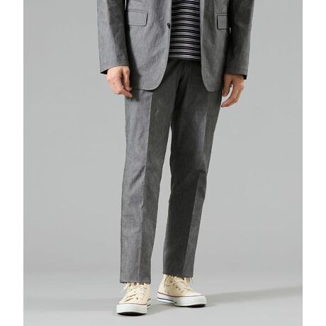 メランジ(杢)のような表情豊かな四者混素材を使用した、清涼感のあるウエストアジャストパンツ。すっきりとしたシルエットとストレッチ性により、動きやすさと上品な見え方を両立しました。単品使いはもちろん、同素材のジャケットと合わせたセットアップスタイルにも対応し、ビジネスからカジュアルまで幅広く活躍します。