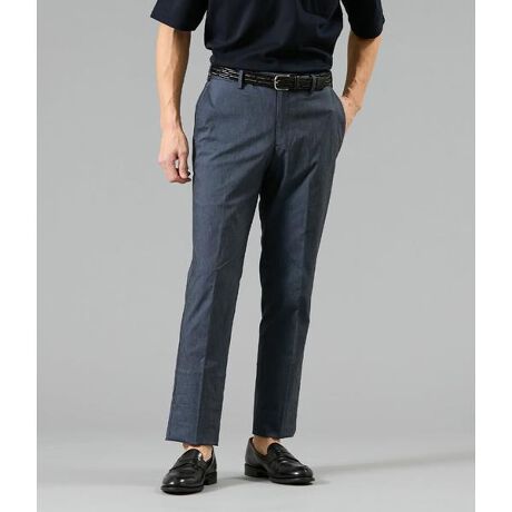 メランジ(杢)調の落ち着いた表情が上品な印象を与えてくれるシンプルなデザイン。ジャケットやシャツを合わせたビジネススタイルから、Tシャツやニットを合わせたきれいめカジュアルまで幅広いコーディネートに対応します。同素材のコンバーチブルカラージャケットとのセットアップスタイルもおすすめです。