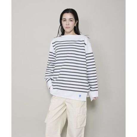 ORCIVALを代表する、ラッセル素材を使用した定番のバスクシャツ。ユニセックスでご利用いただけます。身頃には18本のストライプを配したパネルボーダー。肩の切り変え部分の生地を重ねて縫製することで肩周りの強度を高めた、創業当時のディテールを現代まで作り続けている、ブランドを代表するモデルです。■素材ORCIVALを代表するRACHEL素材。一般的なカットソー地に比べ非常に多くの糸を使用した複雑な構造が特徴です。今ではフランスに数台しか残っていない希少な機械で、当時の製法をそのまま継承して作られています。清涼感に優れており、年間を通して着用が可能。着込むほどに風合いが増し、体に馴染んでいき、まるでデニムのような経年変化を楽しめます。■メーカー表示BOAT NECK L/S P.O. 6101サイズ 3=11(L) 4=13(XL)※生地の特性上、洗い方や回数によって通常の家庭洗濯で、着丈・身幅ともに若干縮みます。お買い求めの際はサイズにご注意ください。※着用、お取り扱いの際は商品についておりますアテンションタグ、洗濯ネームを必ずご確認ください。■サンプル撮影商品画像の商品はサンプルです。実際の商品とはサイズや色味、素材、デザイン等の仕様が若干変更になる場合がございます。■カラーについては、可能な限り実際の商品に近いカラーで撮影をおこなっておりますが、照明の関係により実際の製品とは色味が違って見える場合があります。またパソコン・スマートフォンなどの環境により、若干製品と画像のカラーが異なる場合もございます。現物と画像のカラー差異については返品理由となりませんので、予めご了承ください。■サイズ表記はあくまで目安となります。