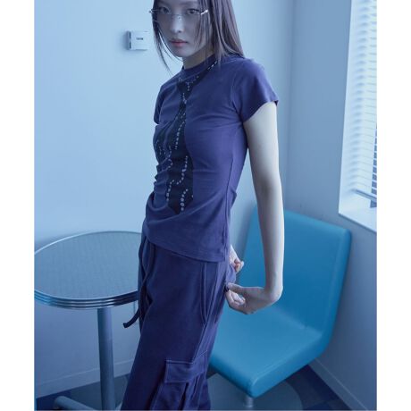 ネクタイモチーフのグラフィックが印象的なTシャツ。シンプルなシルエットに大胆なプリントを施し、一枚でスタイリングのポイントになるデザインに仕上げました。コンパクトなサイズ感で、デニムやカーゴパンツなどカジュアルなボトムとも好相性。ミニマルなコーディネートにさりげない遊び心をプラスしてくれる一枚。