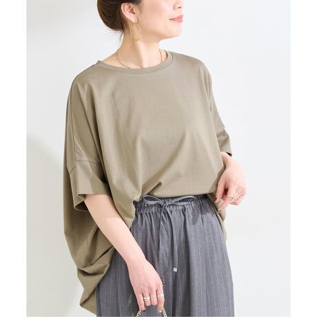 汗染み防止の機能素材を用いたオーバーなサイズの薄手カットソーで、グレーとホワイトはほどよく透け感があり、肌離れしたシルエットが涼しげなアイテムです。