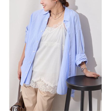ナチュラルな素材感で使いやすい、レースキャミが登場。透け感のあるコットンボイル素材と、繊細なアイラッシュレースの組み合わせが素敵。少し長めに着丈を設定し、レイヤードしやすい一枚です。ニットやスウェット、ジャケットなどのインにも、シャツやカットソーの上に重ねても◎