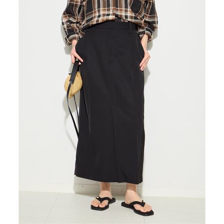 やや光沢感ある素材でペンシルシルエットがきれいに出るタイトのマキシスカートに仕上げました。