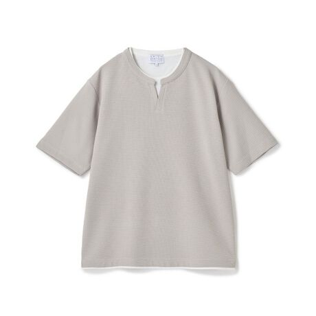 ・ミニワッフル調のジャカード素材を使用したキーネックTシャツ
