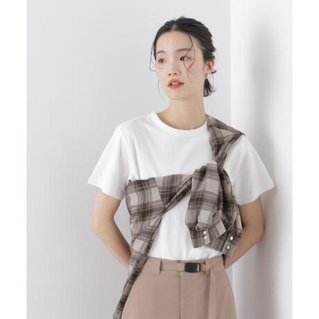 ・きちんと感があり一枚でクリーンな雰囲気のある半袖Tシャツ