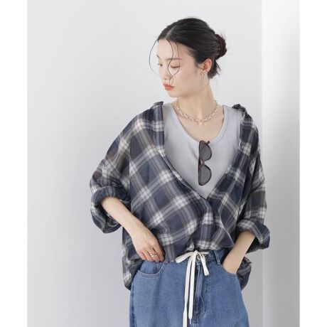 ・透け感のあるチェック柄プリントが落ち着いた雰囲気の一着