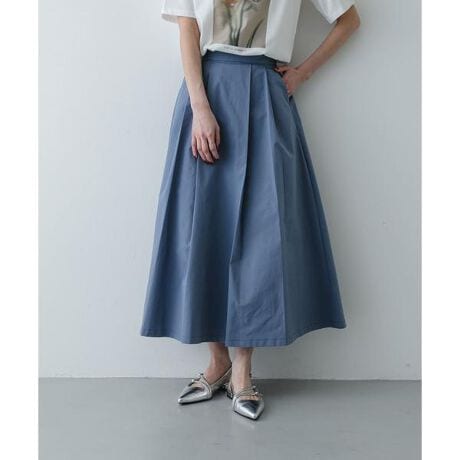 美しいドレープと、程よいハリ感が魅力のタックフレアスカート。クリアでシンプルなデザインながら、贅沢に施されたタックが等身大の華やかさを演出してくれます。ポリエステルツイルの軽やかな質感は、一日中履いていても心地よく、忙しい毎日のワードローブに頼もしい存在。ブラウスを合わせたクリーンなオフィススタイルから、カットソーで力を抜いたデイリースタイルまで、自分らしい洗練された佇まいを叶えてくれる一枚です。