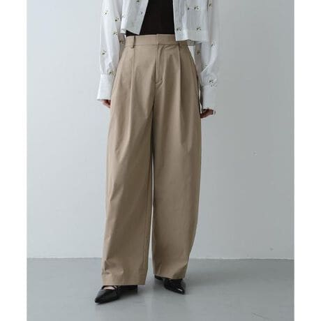 美しい落ち感と、驚くほどの軽やかさを兼ね備えたコクーンワイドパンツ。クリアでシンプルなデザインながら、丸みを帯びた立体的なシルエットが等身大のこなれ感を演出します。ポリエステルツイル生地特有の柔らかな質感は、一日中履いていても疲れにくく、忙しい毎日をスマートにサポート。スニーカーでラフに着崩したり、ヒールで凛と引き締めたりと、自分らしい洗練されたバランスを自在に楽しめる一着です。