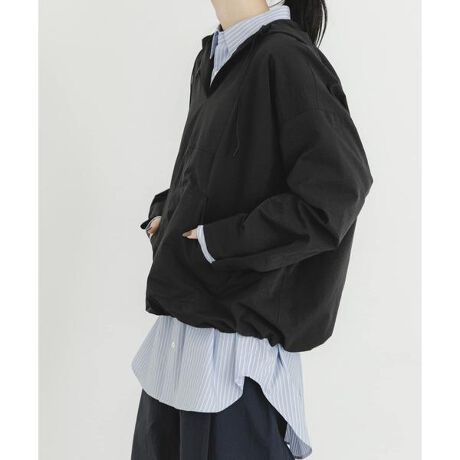 特殊原糸と織物構造をベースに、独自の加工技術により「通気孔」を発現させた、東レ(株)の快適高通気素材「DotAir」を使用。吸水加工・シワ加工も施されています。サマーシーズンの水辺のアクティビティに対して着用いただけるメキシカンパーカーデザイン。フードは熱中症などから身を守ることができ、ロングスリーブで日焼けを軽減し、体を守ることができるアイテムとなっています。袖口はプランサーで調整し、袖をたくし上げることができます。裾はロゴ入りスピンドルで絞ることも出来るのでスタイリングの幅が広がります。夏のアクティビティシーンはもちろんのこと、タウンユースにも活躍するアノラックです。EKALオリジナルコードの衿吊りとプリントネームが施されているのもポイントです。