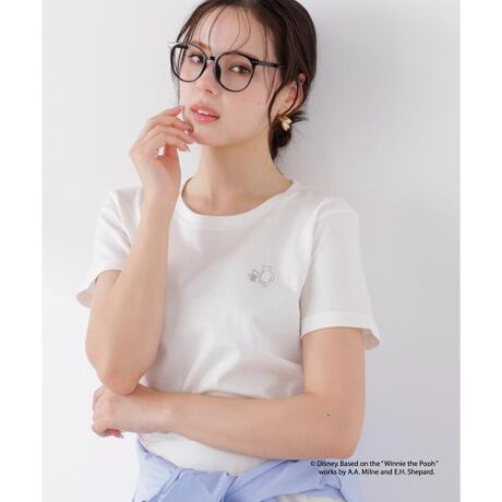 アウトスタイルで着やすい短丈Tシャツ。胸元の刺しゅうで程よい立体感を出したデザインで、普段使いにもぴったりです。ラメプリーツスカートなど華やかなボトムスとのコーディネートを楽しめます。